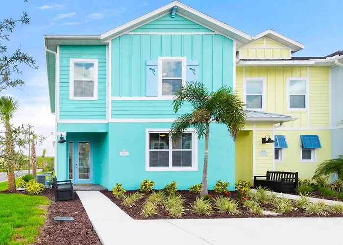 De 3-slaapkamer Breezy Blue Villa Near Disney With Margaritaville Resort Access - 2902Cl bevindt zich in de wijk Celebration, binnen 25 minuten wandelen van The Legends Golf Course, en beschikt over een buitenzwembad waar gasten kunnen ontspannen.